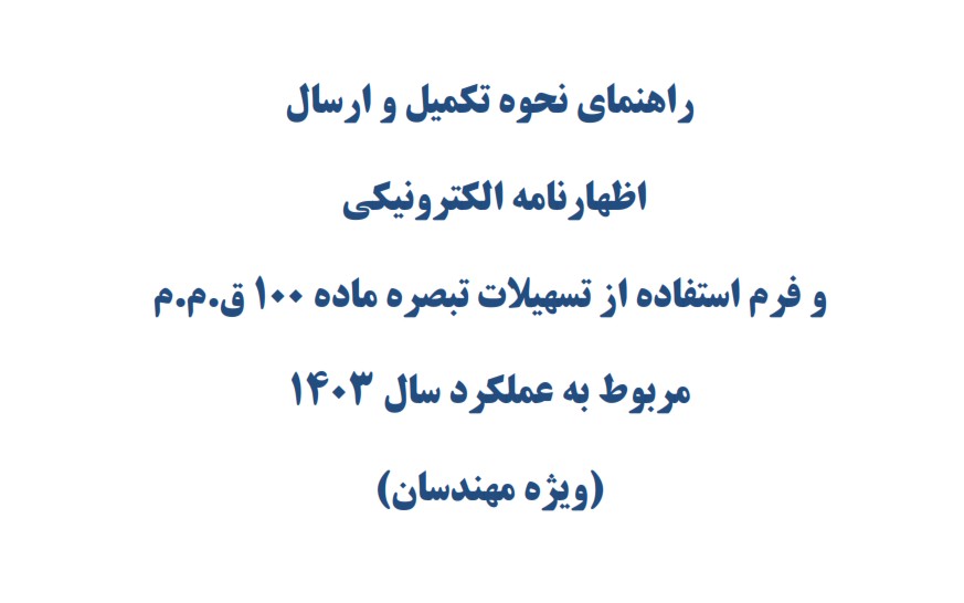 مدیر سایت۱۴۰۴/۶/۱۳ ۵:۵۳:۲۴شهریور 13, 1404|دسته بندی: نظام مهندسی|کلیدواژه: تبصره ماده 100, تبصره ماده صد, راهنمای مالیات, راهنمای مالیاتی, مالیات|۰ نظر