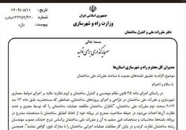 مدیر سایت۱۴۰۴/۸/۱۹ ۵:۵۸:۳۸آبان 19, 1404|دسته بندی: دفتر مقررات ملی, نظام مهندسی|کلیدواژه: مغایرت, مغایرت نقشه با مقررات, مقررات, مقررات ملی, نقشه, نقشه مصوب|۰ نظر